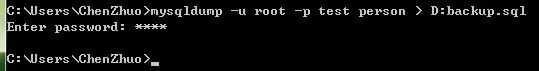 mysqldump -u root -p test person > D:\backup.sql