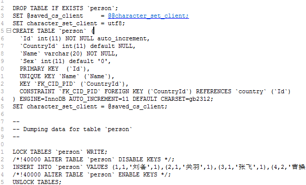 文件中以“--”开头的都是SQL语言的注释,以"/*!40101"等形式开头的是与MySQL有关的注释。40101是MySQL数据库的版本号,如果MySQL的版本比1.11高,则/*!40101和*/之间的内容就被当做SQL命令来执行,如果比4.1.1低就会被当做注释。