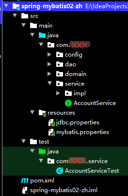 前提: 整合MyBatis使用Idea创建Maven工程, 下图为工程目录结构