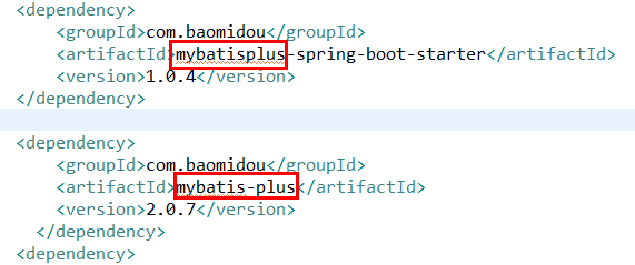 我集成的是mybatis-plus,所以pom.xml文件中应该有个这个对应的包。