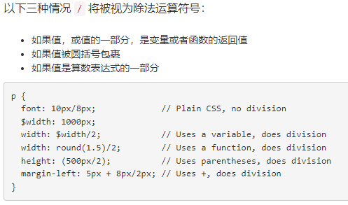 SassScript 支持数字的 加减乘除取整等运算 (+, -, *, /, %),如果有必要,会在不同单位间转换值。