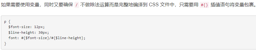 注意:大多数情况下,使用插值语句可能还不如使用变量方便,但是,使用 #{} 可以避免 Sass 运行运算表达式,而是直接编译成CSS。