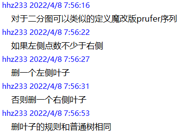 那么它既然是和原prufer序列类似的双射,自然有类似的结论,留给读者自行思考。