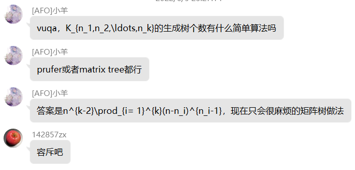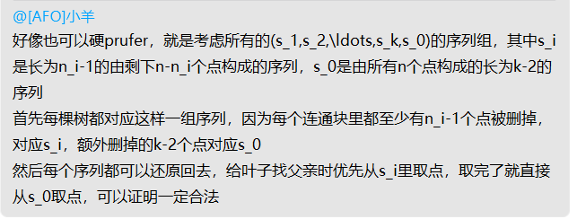 那么根据这个魔改prufer序列,上述结论是显然的。