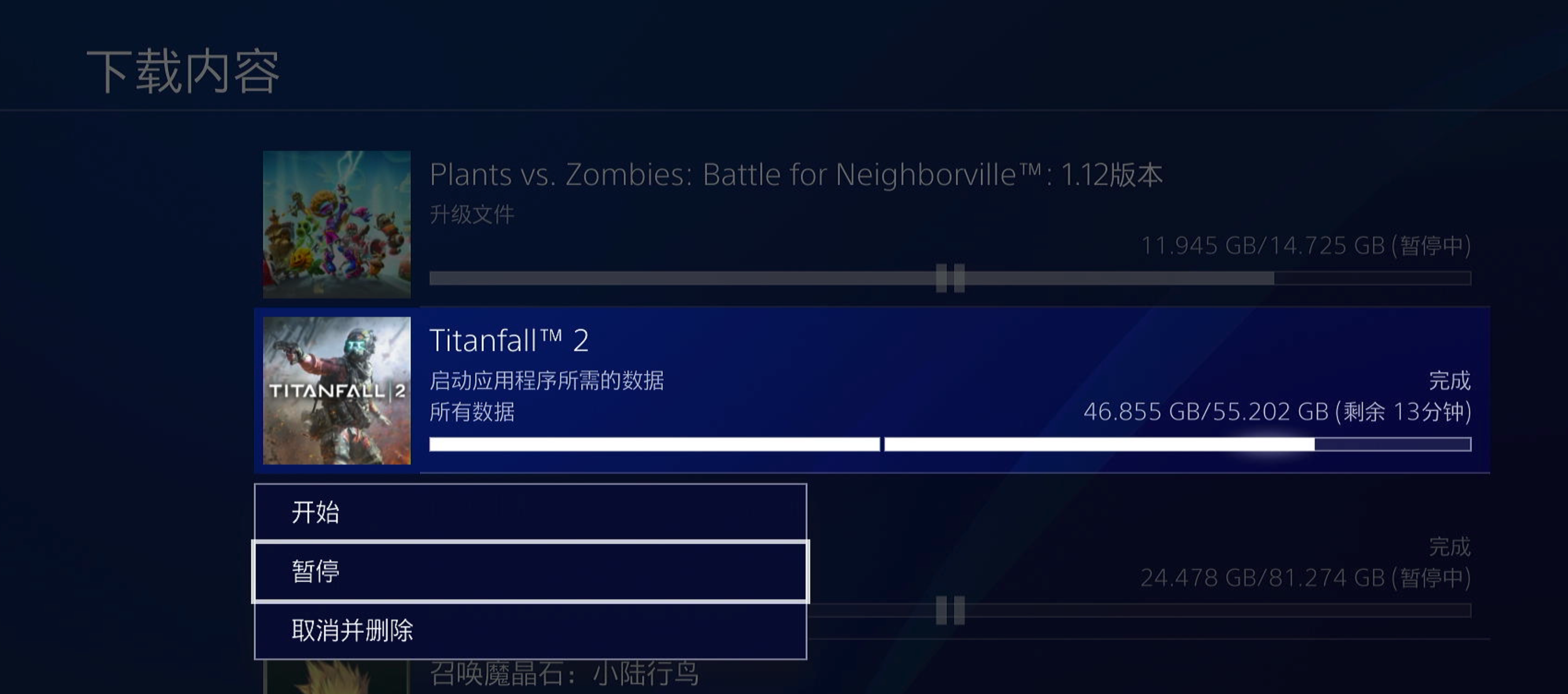 关于ps4的下载暂停的问题
