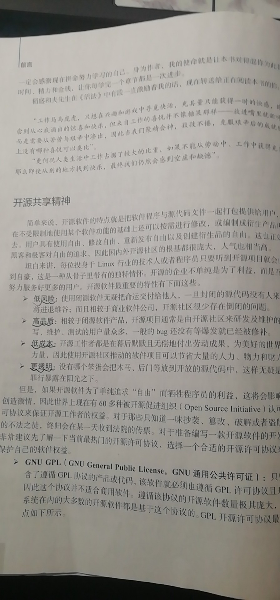 GNU GPL(GNU General Public License,GNU通用公共许可证):只要软件中包含了遵循GPL协议的产品或代码,该软件就必须也遵循GPL许可协议且开源、免费,因此这个协议并不适合商用软件。遵循该协议的开源软件数量极其庞大,包括Linux系统在内的大多数的开源软件都是基于这个协议的。GPL开源许可协议最大的4个特点如下所示。