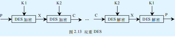 目前双密钥三重DES加密有两种方案:DES-EEE2和DES-EDE2。3DES 即是设计用来提供一种相对简单的方法,即通过增加 DES 的密钥长度来避免类似的攻击,而不是设计一种全新的块密码算法。
