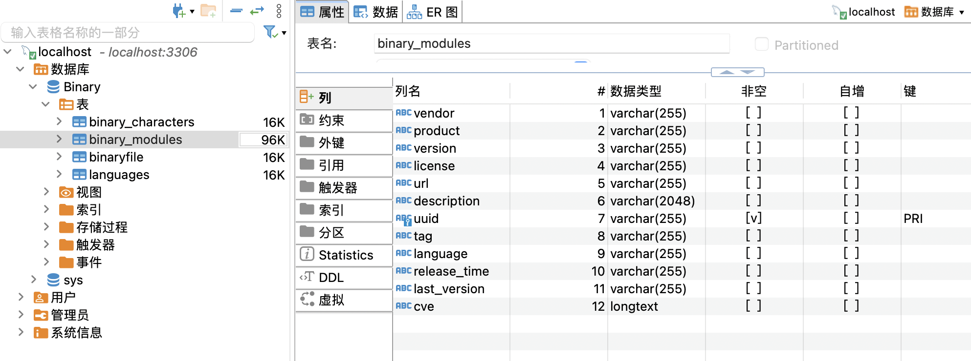 #数据库驱动名称 db.driver=com.mysql.cj.jdbc.Driver # 数据库连接URL db.curl=jdbc:mysql://localhost:3306/Binary # 数据库用户名 db.username=root # 数据库密码 db.password=1234@qwer - 在代码中使用java.util.Properties类读取配置文件,连接数据库