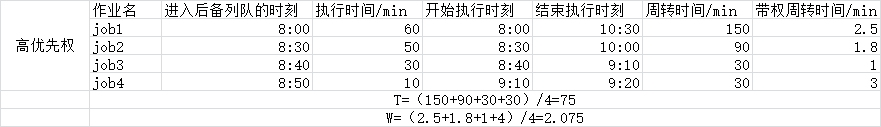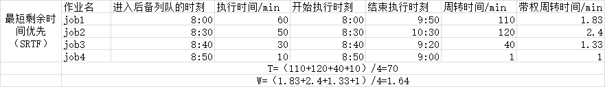 (1)采用高优先权,SRTF调度算法,各作业的执行顺序。
