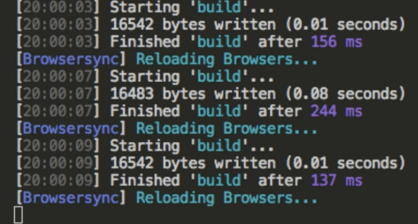 其中,runSequence用于同步执行gulp任务,多次实践,这里还需要加入变量isBuildError,在代码编译出错时,不执行browserSync的刷新。