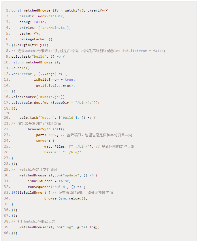 通过gulp官网可了解到watchify到相关使用,这里我们将代码改成,并结合browser-sync,带来自动刷新网页的功能。