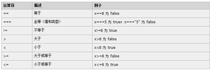 比较运算符(关系运算符)是两个数据进行比较时所使用的运算符,比较运算后,会返回一个布尔值(true / false )作为比较运算的结果。
