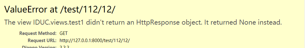 提示你没有返回一个 HttpResponse 对象, 而是返回了一个 None