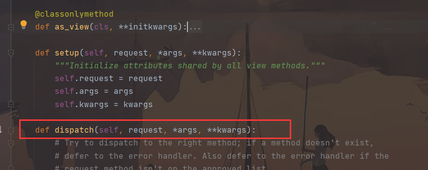 # 最后到父类View中去找,发现就在as_view类方法的下面找到了