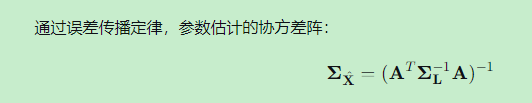 这赋予了算法智能:不仅给高精度观测值(小方差)更高权重,还通过非对角元素抵消相关误差的影响,从而得到更优、更可靠的位置解。其参数解的协方差阵为:Σ_x = (A^T W A)^{-1},其中A为设计矩阵。