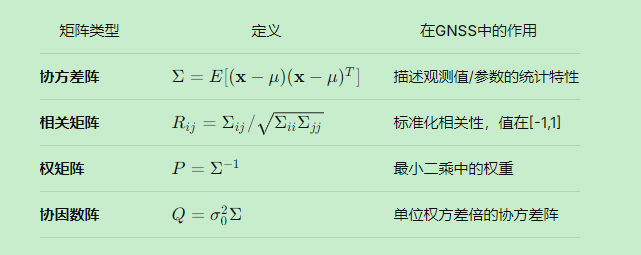 | 物理必要性 | GNSS误差本质上是相关的,必须用矩阵描述 |