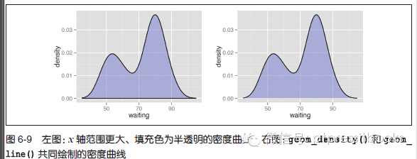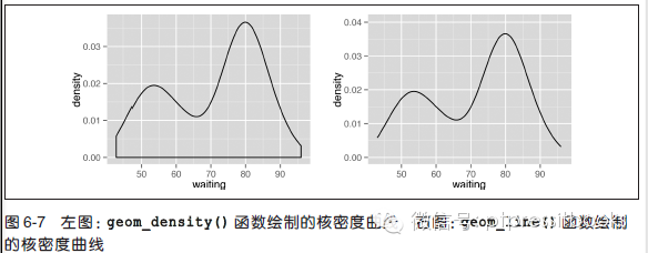 假设不想绘制图形两側和底部的线段,能够使用geom_line(stat="density") 函数(见图6-7 右图):