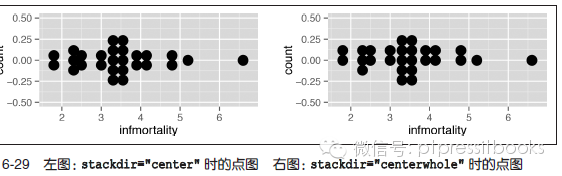 点图也能进行中心堆叠,或者採用一种奇数与偶数数量保持一致的中心堆叠方式。这能够通过设置stackdir="center" 或者stackdir="centerwhole" 来完毕,如图6-29 所看到的: