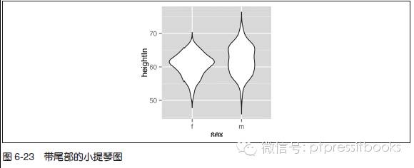 小提琴图默认的坐标范围是数据的最小值到最大值,其扁平的尾部在这两个位置处截断。通过设置trim=FALSE 能够保留小提琴的尾部(见图6-23):