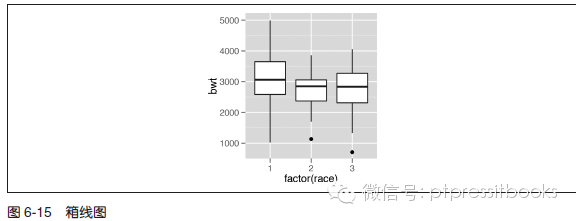 这里计算分位数的方法与R base 包中的boxplot() 函数所使用的计算方法略有不同。当样本量较小时,这个差异可能会比較明显。键入geom_boxplot() 命令能够查看这两种计算方法的差异。