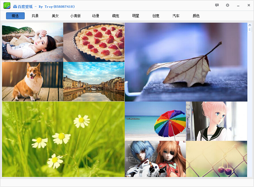 第三步有了详细数据了,以下就能够自己构架子的client程序了。以下的仿百度壁纸程序使用了duilib进行开发。截图例如以下: