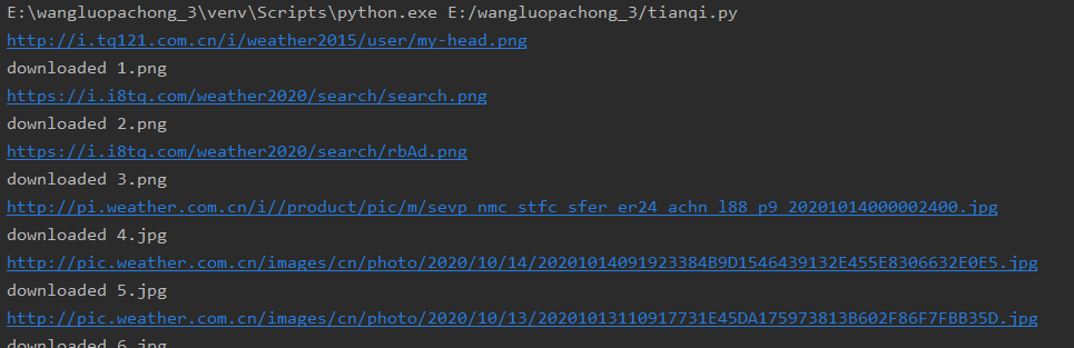 (1)、要求:指定一个网站,爬取这个网站中的所有的所有图片,例如中国气象网(http://www.weather.com.cn)。分别使用单线程和多线程的方式爬取。