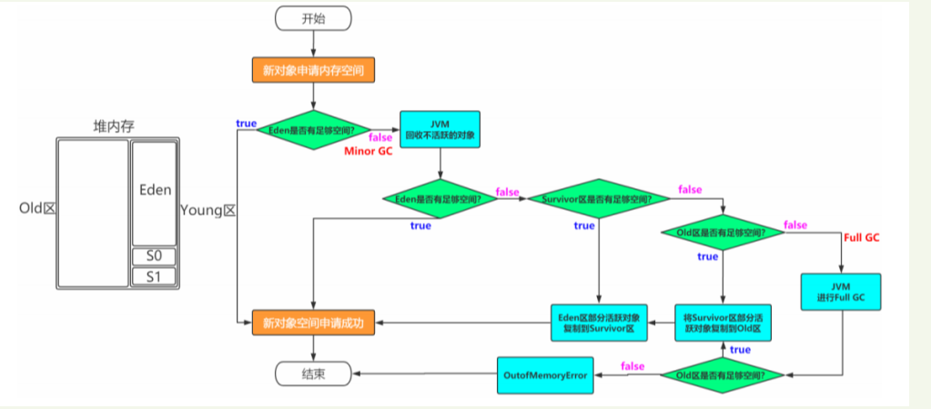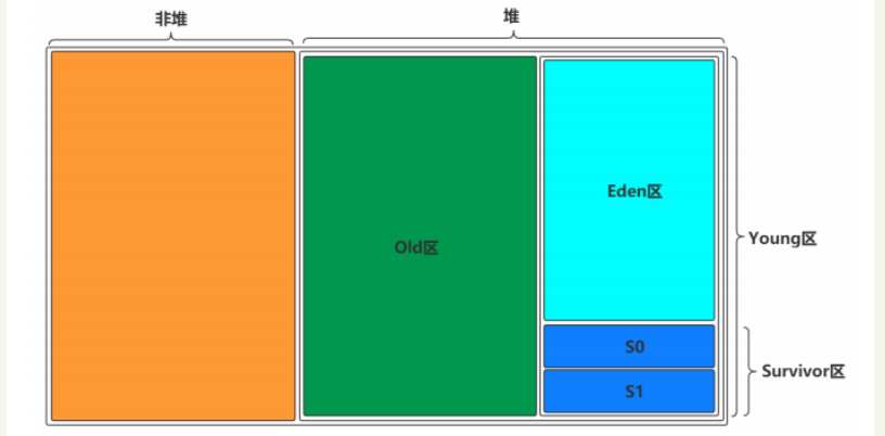 Young区的一部分,默认Eden:s0:s1=8:1:1,一般对象默认创建后进入Eden区,内存不足进行Minor GC ,将存活对象复制到S0后清理Eden