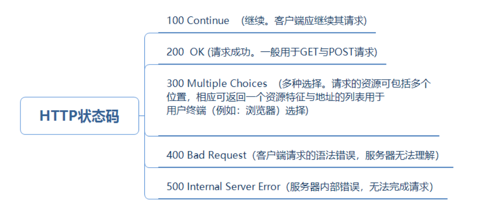 HTTP状态码的英文为HTTP Status Code,具体状态码有下列几种类型
