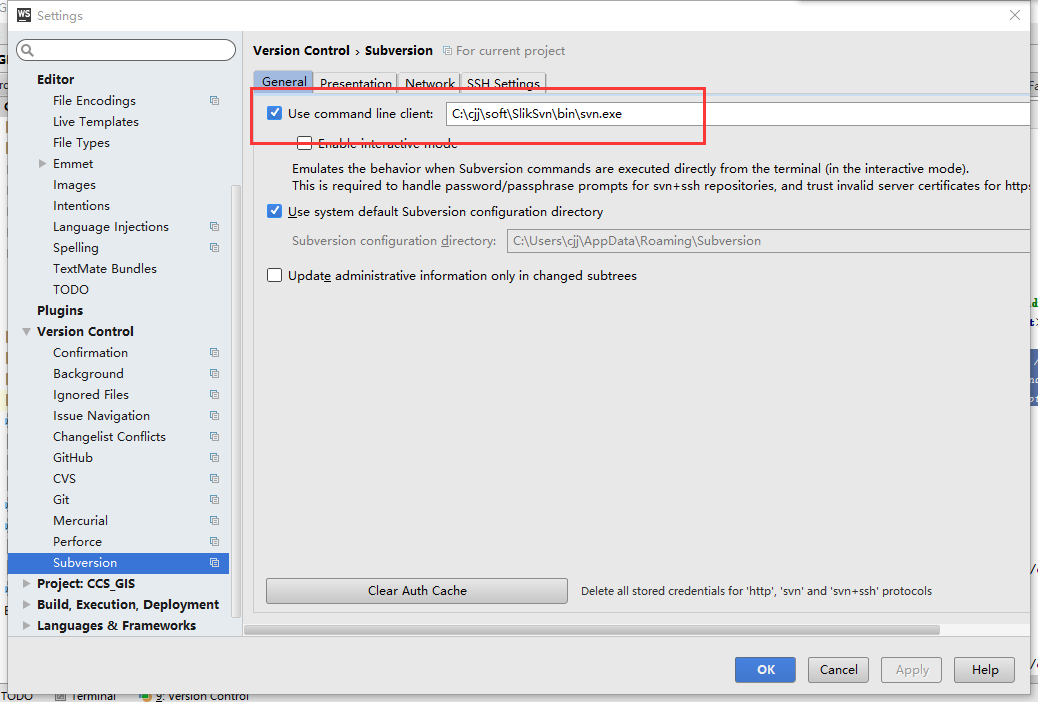 2、勾选use command line client: 如下图选中sliksnv安装目录(d:\soft\sliksvn\bin\svn.exe)
