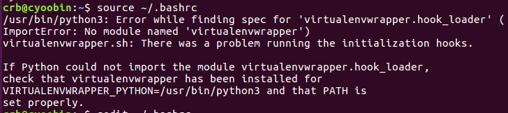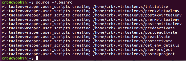 export WORKON_HOME=$HOME/.virtualenvs export VIRTUALENVWRAPPER_PYTHON=/usr/bin/python3 source /usr/local/bin/virtualenvwrapper.sh -