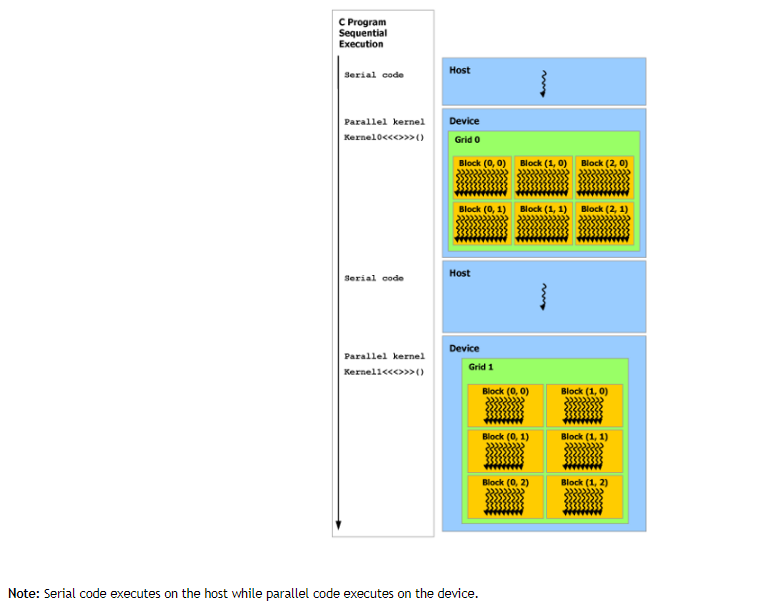 简单说,可以将主机和设备一起视为一个内聚的异构系统,其中每个处理单元都可以利用它做的最佳工作:主机上的顺序工作和设备上的并行工作。