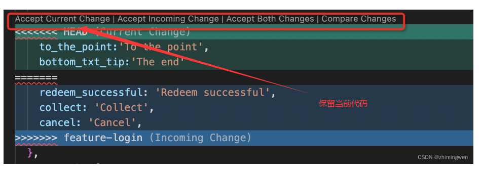 2.使用vscode自带插件保留当前代码,或者手动合并
