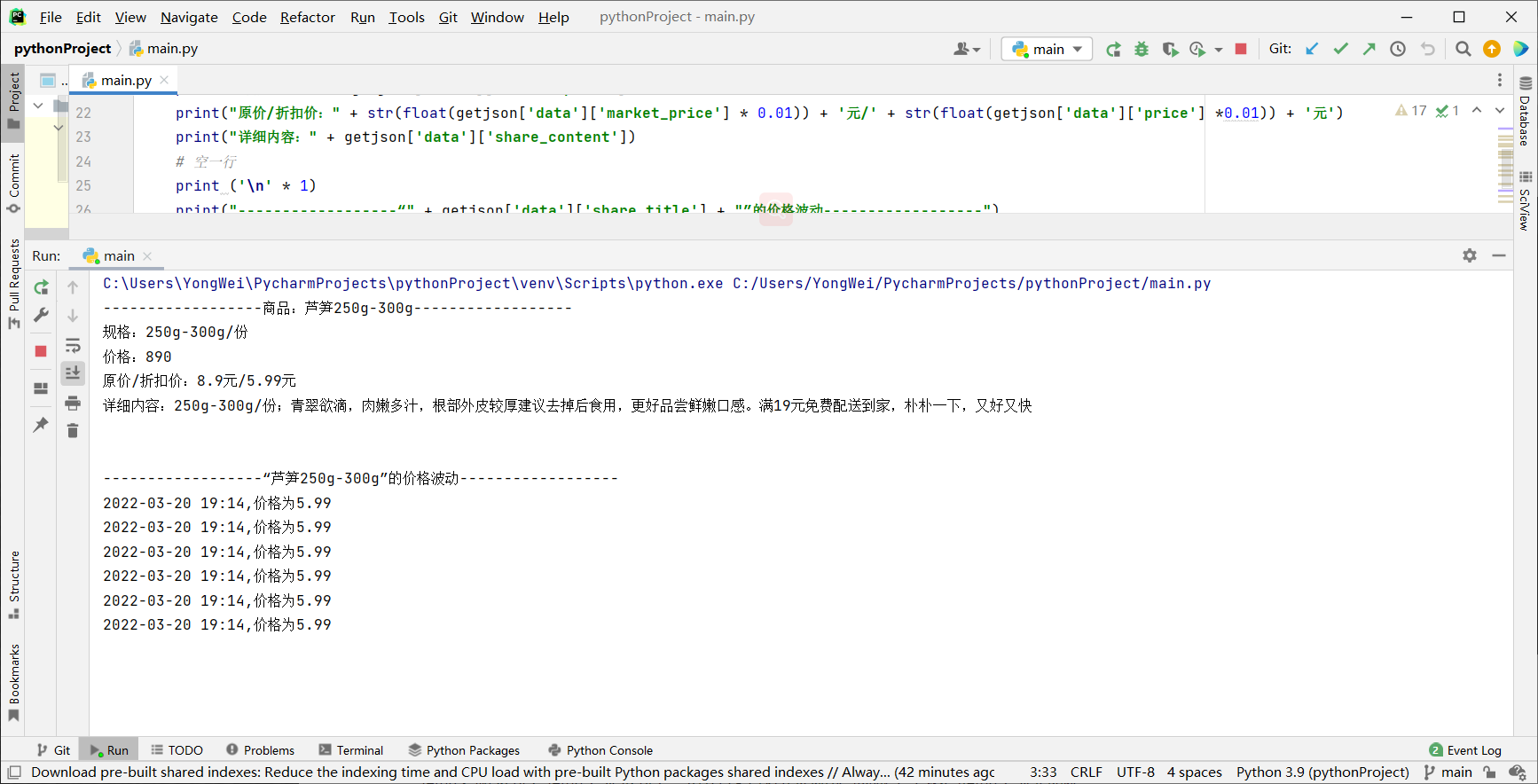 - 实时获取当前价格没有接触过,通过百度和B站,参考“Python实时获取当前股票信息”并寻求舍友帮助完成。