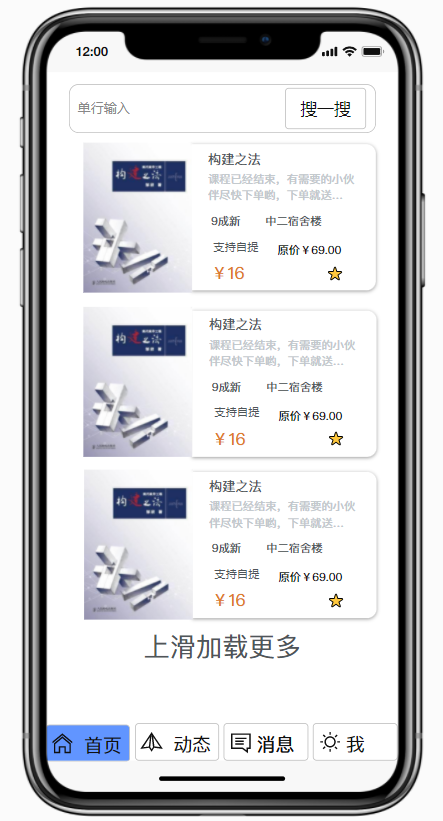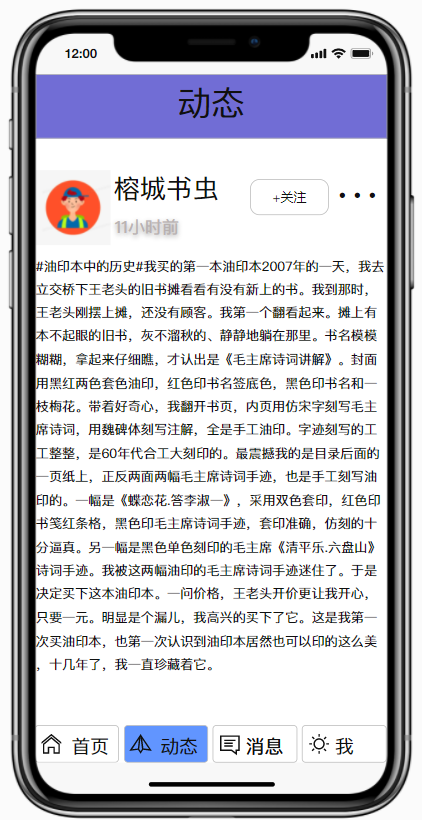 4.通过动态进行校园趣事,提高用户互动,以及交流购书心得,进一步提高学生使用“闲书”的频率;