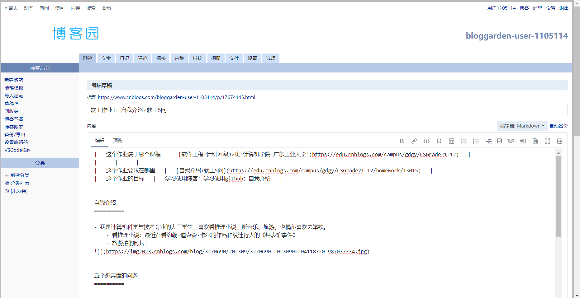 | 这个作业要求在哪里 | 自我介绍+软工5问 |
