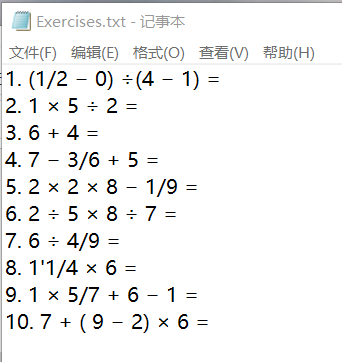 出题模式:随机生成题目和答案 -> 保存题目和答案到文本中