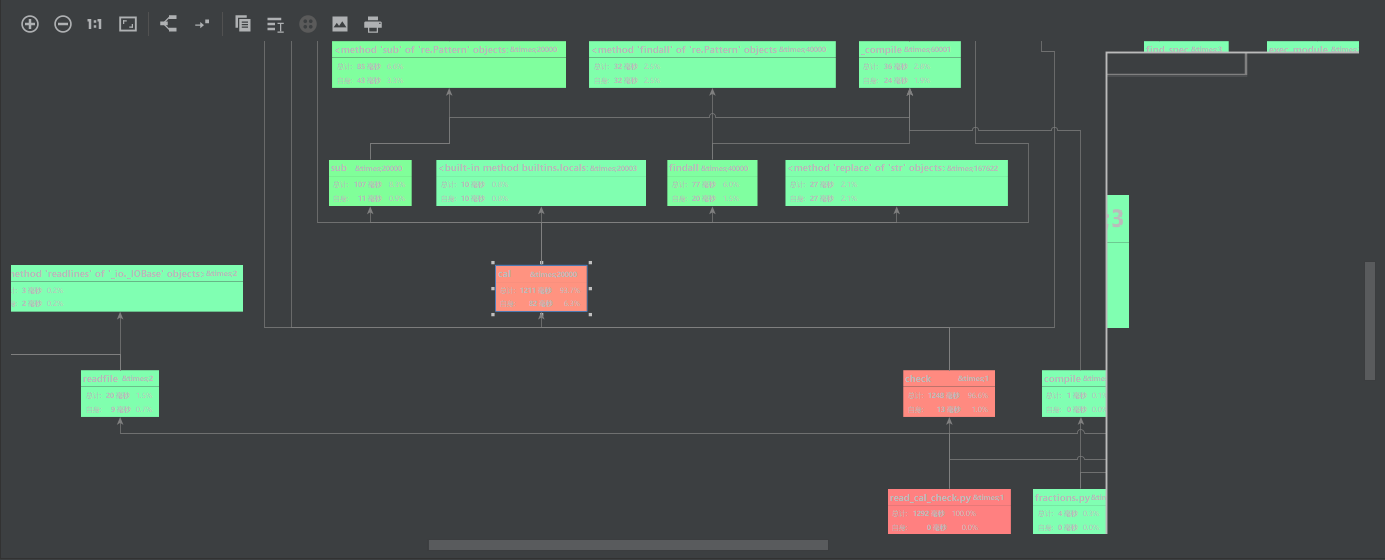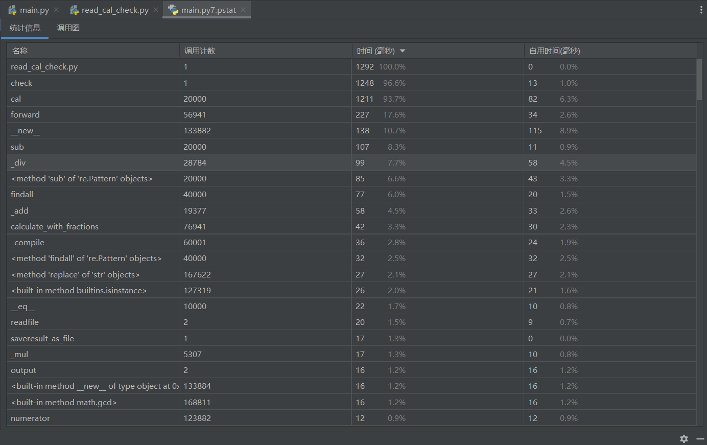 可以看到,在改卷模式中,check()函数耗时最长;在出卷模式中,cal()函数耗时最长。综合来看,cal()函数无论在阅卷模式还是出卷模式都占用CPU极大的时间。