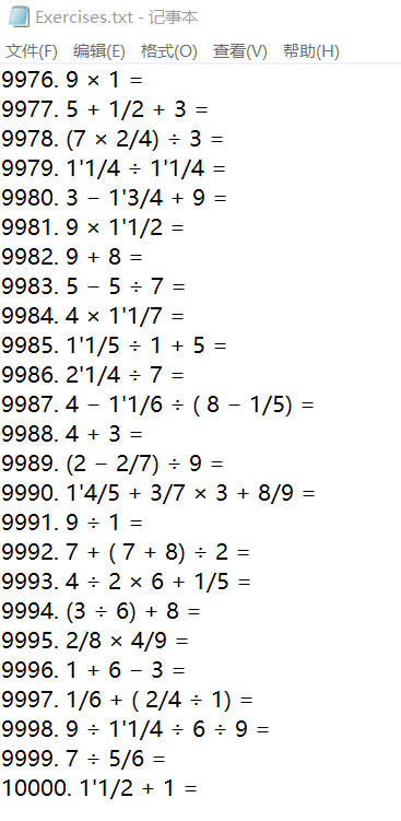 支持对10000道题目的生成