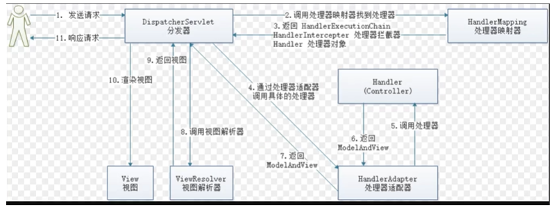 DispatcherServlet表示前置控制器,是整个SpringMVC的控制中心。用户发出请求,DispatcherServlet接收请求并拦截请求。