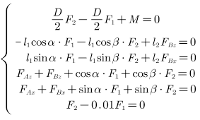 eq3 = L_1*sin(a)*F1-L_1*sin(b)*F2+L_2*F_BX == 0;