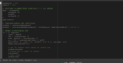 learning_rate = 1e-3 lambda_l2 = 1e-5 # nn 包用来创建线性模型 # 每一个线性模型都包含 weight 和 bias model = nn.Sequential( nn.Linear(D, H), #D:每个样本的特征维度 H:神经网络里隐层单元的数量 nn.Linear(H, C) #C 样本的类别 ) model.to(device) # 把模型放到GPU上 # nn 包含多种不同的损失函数,这里使用的是交叉熵(cross entropy loss)损失函数 criterion = torch.nn.CrossEntropyLoss() # 这里使用 optim 包进行随机梯度下降(stochastic gradient descent)优化 optimizer = torch.optim.SGD(model.parameters(), lr=learning_rate, weight_decay=lambda_l2) # 开始训练 for t in range(1000): # 把数据输入模型,得到预测结果 y_pred = model(X) # 计算损失和准确率 loss = criterion(y_pred, Y) #沿着第二个方向(相当于二维列表横轴方向)提取最大值。最大的那个值存在 score 中 score, predicted = torch.max(y_pred, 1) #所在的位置(即第几列的最大)保存在 predicted 中。 acc = (Y == predicted).sum().float() / len(Y) print('[EPOCH]: %i, [LOSS]: %.6f, [ACCURACY]: %.3f' % (t, loss.item(), acc)) display.clear_output(wait=True) optimizer.zero_grad() loss.backward() optimizer.step()