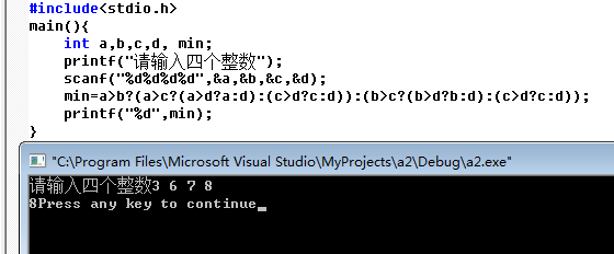 min=a>b?(a>c?(a>d?a:d):(c>d?c:d)):(b>c?(b>d?b:d):(c>d?c:d));