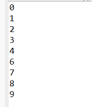 package a; public class aaa { public static void main(String[] args) { for(int i=0;i<=9;i++) { if(i==5) { continue; } System.out.println(i); } } }