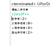 2.输入一个字符串,判断里面数字、大写字母、小写字母,其他字符的个数