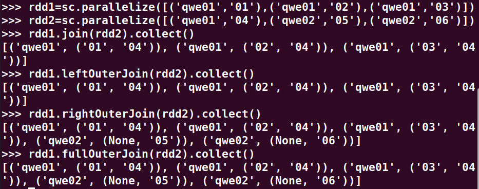 join(), leftOuterJoin(), rightOuterJoin(), fullOuterJoin()