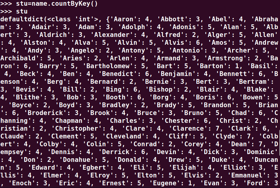 每个学生选修了多少门课?map(), countByKey()