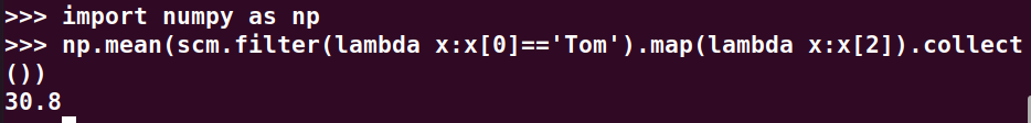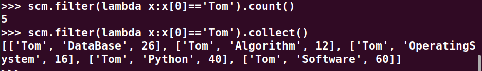 Tom选修了几门课?每门课多少分?filter(), map() RDD
