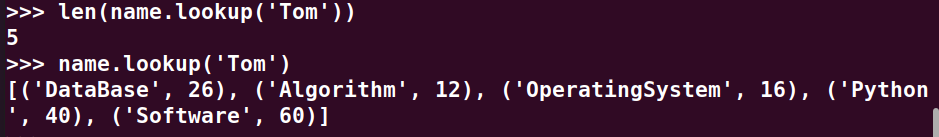 Tom选修了几门课?每门课多少分?map(),lookup() list
