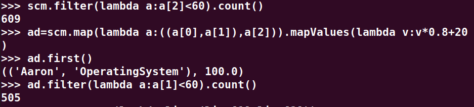 分别用mapValues(func)和 map(func)实现。