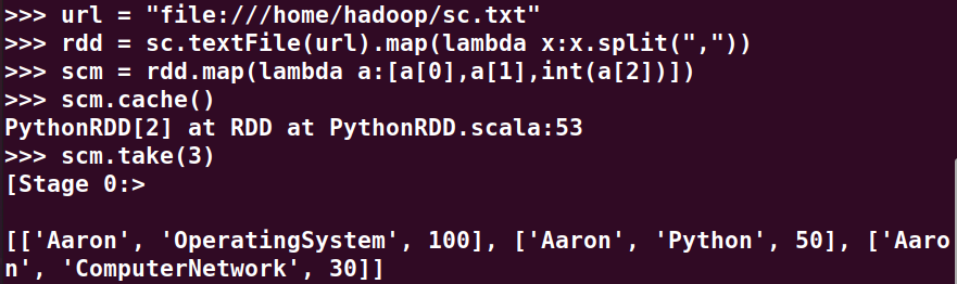 网盘下载sc.txt文件,分别创建RDD、DataFrame和临时表/视图;